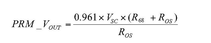 SC電壓經(jīng)緩沖后通過(guò)電阻分壓器反饋給誤差放大器,其中電阻分壓器被表示為0.961的增益塊。R68形成了電壓檢測(cè)電阻分壓器的上半部分。這個(gè)電阻對(duì)每個(gè)PRM來(lái)說(shuō)都是固定的。分壓器的下半部分是通過(guò)在OS引腳和SG(ROS)之間增加一個(gè)電阻形成的。公式1將PRM輸出定義為VSC和ROS的函數(shù)。從公式1可以看出,對(duì)于給定的ROS電阻,調(diào)整SC電壓可以確定PRM輸出電壓。這就是外部電流控制電路控制輸出所采用的方法。