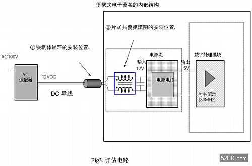 一般說來,便攜式電子設(shè)備內(nèi)部的噪聲是通過DC電源線以共模的方式輸出的,像在AC適配器導(dǎo)線上,其噪聲可以用共模噪聲濾波器進(jìn)行有效抑制。