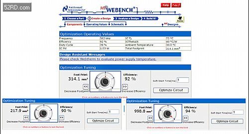 美國國家半導(dǎo)體亞太區(qū)電源管理產(chǎn)品市場總監(jiān)黃漢基介紹說,該公司的WEBENCH在線工具可為工程師推薦合適的器件,并進行設(shè)計優(yōu)化,具體到電源設(shè)計上就是:根據(jù)用戶設(shè)定的輸入電壓、輸出電壓和輸出電流以及工作時環(huán)境溫度等信息,利用在線電氣仿真和熱仿真,設(shè)計并優(yōu)化電源,并可快速獲得定制的原型套件。