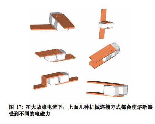現(xiàn)代生產(chǎn)過程對(duì)整流器電流輸出能力要求越來越高,這意味著整流柜中的能量密度越來越大。將現(xiàn)代新型的大功率半導(dǎo)體與5號(hào)快熔搭配,可以減少整流器中元件的數(shù)目,每個(gè)元件承擔(dān)的電流也將會(huì)增加,故障電流水平也將增長,甚至可能達(dá)到接近300KA的水平。在這么大的故障電流下,由于電流通路的不同走向,熔斷器有可能要承受巨大的電磁力。