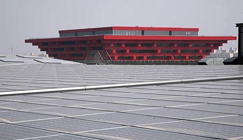 據(jù)悉,上海世博園區(qū)太陽能發(fā)電項(xiàng)目在設(shè)計(jì)和施工過程中,還充分考慮到太陽能光伏電站發(fā)電效率的優(yōu)化與世博建筑美學(xué)的統(tǒng)一,屋頂平面采用單晶硅光伏組件與綠化間隔鋪設(shè)的布置,屋頂設(shè)備間南墻立面采用光伏遮陽組件,達(dá)到了既美觀又節(jié)能的效果。