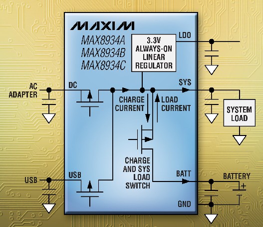 Maxim推出業(yè)內(nèi)首款集成智能電源選擇器(Smart Power Selector)電路的雙輸入線性充電器MAX8934,器件符合JEITA (日本電子信息技術產(chǎn)業(yè)協(xié)會)推薦標準,能夠在各種溫度條件下實現(xiàn)安全充電。MAX8934監(jiān)測電池溫度,根據(jù)溫度的變化自動將充電電流和充電終止電壓調(diào)節(jié)到安全水平。連接外部電源時,智能電源選擇器電路允許系統(tǒng)在無電池或電池深度放電的情況下工作,自動將系統(tǒng)負載由電池切換至外部電源。器件集成了充電以及在電池與外部電源之間切換負載所需的所有電流檢測電路和功率開關,可為智能電話、數(shù)碼相機、多媒體播放器、游戲系統(tǒng)及GPS導航系統(tǒng)等采用單節(jié)Li+電池供電的手持設備提供理想的緊湊方案。