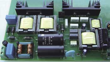 這里采用的控制器是FAN4810,該器件包含了先進(jìn)的平均電流“升壓”型功率因數(shù)校正實(shí)現(xiàn)電路,電源因此能夠完全滿足IEC1000-3-2規(guī)范的要求。它還包含了TriFaultDetect功能,有利于確保不會(huì)因PFC中單個(gè)組件的故障造成不安全事件。1A的柵極驅(qū)動(dòng)器又極大降低了對(duì)外部驅(qū)動(dòng)器電路的需求。此外,它的功率要求很低,既提高了效率也降低了組件成本。該P(yáng)FC還帶有峰值限流、輸入電壓中斷保護(hù)功能,還有一個(gè)過壓比較器,可在發(fā)生負(fù)載突然減小事件時(shí)關(guān)斷PFC部分。時(shí)鐘輸出信號(hào)可用來同步下游的PWM級(jí),以減少系統(tǒng)噪聲。