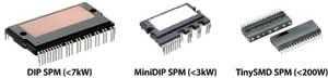 為了克服以上約束,最好采用智能功率模塊(intelligentpowermodule(IPM),也稱為SmartPowerModule(SPM®))。圖2所示為一個典型的全封閉模塊,它包含一個完整的三相電壓源變頻器,以及相應的柵極驅動器和保護電路。采用這種模塊比分立元件方案節(jié)省電路板空間多達50%。尤其是這種模塊需要的外接部件極少,在設計上就考慮了EMC的要求。其峰值和平均EMC干擾強度比傳統(tǒng)設計低很多。
