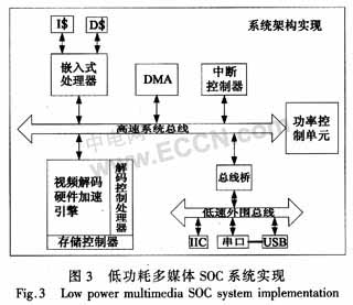 在多媒體SOC中,為了保證服務(wù)質(zhì)量,系統(tǒng)的設(shè)計(jì)目標(biāo)必須是面向最高負(fù)載情況。然而在實(shí)際運(yùn)行過(guò)程中,視頻解碼器、中央處理器以及一些外設(shè)經(jīng)常處于不活動(dòng)或者低負(fù)載狀態(tài),這無(wú)疑白白消耗了一些能量。為解決該問(wèn)題,EDA公司對(duì)Multi-Vt以及Muhi-Vdd等低功耗設(shè)計(jì)技術(shù)提供更有力的支持,IP供應(yīng)商對(duì)同一IP核也提供了豐富配置以滿足不同應(yīng)用需求,同時(shí)Foundry也提供了更豐富的標(biāo)準(zhǔn)單元庫(kù)以及工藝。在進(jìn)行低功耗多媒體SOC設(shè)計(jì)的過(guò)程中,設(shè)計(jì)者所要做的就是充分利用這些技術(shù)優(yōu)勢(shì),盡可能地去開發(fā)可利用的低功耗設(shè)計(jì)空間。