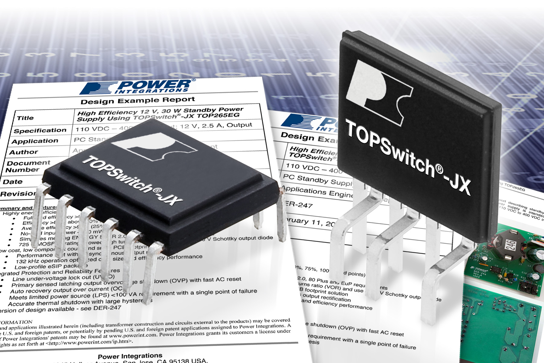 用于高能效電源轉(zhuǎn)換的高壓集成電路業(yè)界的領(lǐng)導(dǎo)者Power Integrations公司,今日宣布推出使用其新近發(fā)布的TOPSwitch-JX IC產(chǎn)品系列設(shè)計(jì)的兩款全新待機(jī)電源參考設(shè)計(jì)。TOPSwitch-JX器件采用多模式控制,不僅可降低電源待機(jī)功耗,還能在整個(gè)工作負(fù)載下實(shí)現(xiàn)最高效率。新的參考設(shè)計(jì)非常適合那些要求滿載效率達(dá)到90%以上,以便輕松滿足嚴(yán)格能效標(biāo)準(zhǔn)的應(yīng)用,這些標(biāo)準(zhǔn)包括80 PLUS? Gold或Silver PC規(guī)范、EuP Lot 6待機(jī)標(biāo)準(zhǔn)以及美國加州新的電視機(jī)功耗要求。
