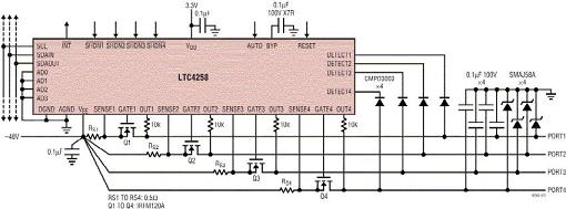 圖1a:采用LTC4258實現(xiàn)的符合基本802.3af標準的PSE電路