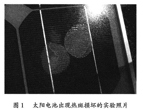 太陽電池?zé)岚呤侵柑?a target="_blank" style="text-decoration:none;" >電池組件在陽光照射下,由于部分組件受到遮擋無法工作,使得被遮蓋的部分升溫遠(yuǎn)遠(yuǎn)大于未被遮蓋部分,致使溫度過高出現(xiàn)燒壞的暗斑,如圖1所示。熱斑可能導(dǎo)致整個(gè)電池組件損壞,造成損失。因此,需要研究造成熱斑的內(nèi)在原因,從而減小熱斑形成的可能性。太陽電池?zé)岚叩男纬芍饕蓛蓚€(gè)內(nèi)在因素構(gòu)成,分別與內(nèi)阻和太陽電池自身暗電流大小有關(guān)。