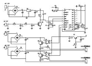 stc12c4052ad單片機自帶A/D轉(zhuǎn)換器,具有高速、高可靠性,強抗靜電(過4kV快速脈沖干擾),強抗干擾,寬電壓,不怕電源抖動等特點。它完成同步信號檢測(P3.2口,int0中斷輸入端)、控制信號輸出(P3.4、P3.5)、輸出強度調(diào)整(P1.1)和工作狀態(tài)指示等功能;整流橋Z1、三端穩(wěn)壓塊u2等構(gòu)成穩(wěn)壓電源,為整個控制電路提供電源;r1、r2、Q2等完成交流同步信號的輸入,其中,r1、C7、r2、C8濾除高頻脈沖的干擾,同步信號輸入到單片機的int0端;整流橋z2、z3、Q3、Q4等構(gòu)成獨立的電源,分別驅(qū)動可控硅SCR1、SCR2;光耦G1、G2將低壓控制電路與高壓驅(qū)動電路隔離,既保證了控制芯片和人身安全,同時具有抗干擾作用;三極管Q1及周圍電路,用于上電延時。上電時,C14不能突變,所以Q1處于截止狀態(tài),Q3、Q4都不能導通,在單片機初始化完成后,P3.4、P3.5處于正常狀態(tài)時,Q1進入導通狀態(tài),避免了SCR1和SCR2同時導通。