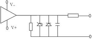 按建造設計規(guī)范要求,遙測輸出采用了雙向限幅電路和限流保護措施,保護電路如圖5所示。