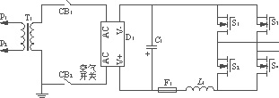 從圖3可以看出,為了防止主電路整流側(cè)過流損壞,在變壓器副邊設(shè)置了空氣開關(guān)。在此需要說明的是,此開關(guān)不能設(shè)置在變壓器原邊,以避免因勵磁涌流而誤動作。在逆變部分還加入了小電感,以防止電流變化造成的損壞,串入快速熔斷器作為晶體管過電流保護的后備保護。