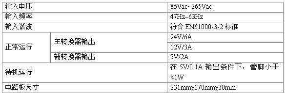 其工作原理是,如果反饋信號水平降至突發(fā)進入閾值(FB1)以下,并持續(xù)一段時間,控制IC進入主動突發(fā)模式。這時開關(guān)脈沖停止,輸出電壓則會降低,然后反饋電壓升高。當(dāng)它升到突發(fā)開始水平(FB3),開關(guān)脈沖恢復(fù)。在處于突發(fā)模式期間,輸出會升高,反饋電壓開始降低。當(dāng)它降到突發(fā)結(jié)束水平(FB2),開關(guān)脈沖再次停止。這種突發(fā)交替性結(jié)束開始,構(gòu)成主動突發(fā)模式。如果負載由輕載提高至重載,反饋電壓值將開始提高。如果反饋電壓水平超過突發(fā)退出閾值(FB4),IC將離開主動突發(fā)模式。屏蔽時間和其他2個閾值(FB1和FB4)可有效降低錯誤觸發(fā)突發(fā)模式的幾率。最后,如果IC進入主動突發(fā)模式,最大峰值電流閾值將降至原始值的三分之一或四分之一。這可大大降低變壓器電流噪音。除了待機轉(zhuǎn)換效率,還可降低輸出電壓、主總線和輸入電壓感測功率損耗。例如,在主功率級的輸入電壓采樣部分采用4MΩ電阻分壓器。系統(tǒng)性能表1推薦解決方案的技術(shù)規(guī)格