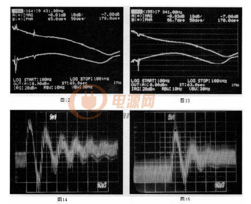 構造一個150W的電流模式正激轉換器,經過修正的小信號環(huán)路特性顯示出它在系統瞬態(tài)響應時所起的作用。圖13(原文誤為圖12,譯注)給出它的增益-相位圖。與圖11所展示的一樣,獲得了相同的博得圖曲線。此增益相位圖顯示這個系統有86.7度的相位裕量。意味著穩(wěn)定的系統有快速的瞬態(tài)響應。圖15(原文誤為圖13,譯注)給出系統的瞬態(tài)響應。為了展示相位裕量的作用,通過增加整個系統的增益和提高穿越頻率,系統的相位裕量會減少。穿越頻率提高時系統的相位裕量在減少。圖12(原文誤為圖14,譯注)給出更高的穿越頻率和更少的相位裕量(65度)時的系統博得圖。其瞬態(tài)響應見圖14(原文誤為圖15,譯注),注意更少的相位裕量導致更大的振蕩和更長的調節(jié)時間。表1比較了這兩個不同增益大小的系統之間線性和負載調節(jié)率的變化。正如前面所述,高的環(huán)路增益得到更緊密的線性和負載調節(jié)率。還應該注意需在高的相位裕量和較低的環(huán)路增益之間取得平衡。