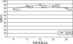 所以,在兩個(gè)原邊開關(guān)管都處于斷態(tài)期間內(nèi),其中一個(gè)同步整流管的體二極管必須導(dǎo)通進(jìn)行續(xù)流。由于此時(shí)的負(fù)載電流不大,體二極管上的功率損耗也不明顯。隨著負(fù)載的加大,原邊的振蕩會(huì)逐漸增大,直到能夠開通副邊同步整流管。圖4所示的是負(fù)載電流Io=20A時(shí)的變壓器原邊電壓波形以及兩個(gè)同步管驅(qū)動(dòng)波形。當(dāng)原邊開關(guān)管關(guān)斷時(shí),存在于漏感中的能量足夠以開通兩個(gè)同步管。然而同步管的關(guān)斷只能通過(guò)外加驅(qū)動(dòng)信號(hào)來(lái)實(shí)現(xiàn)。它們分別來(lái)自于原邊開關(guān)管的門極驅(qū)動(dòng)vg1和vg2。圖5是測(cè)得的變流器的效率曲線圖。