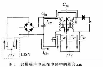 1 反激式開關(guān)電源的共模傳導(dǎo)干擾