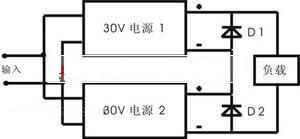 220V交流電壓經(jīng)整流和濾波后得到320V左右的直流電壓,加至電源模塊輸入端。單DC-DC模塊的最高輸出電壓一般為+48V,要得到+60V的直流輸出電壓,必須采用模塊串聯(lián)的方法得到。設(shè)計采用兩塊PH600S280-28 DC-DC模塊(調(diào)至+30V輸出),通過串聯(lián)得到+60V的輸出電壓,如圖1所示。