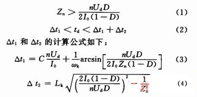 式中:Zn為特性阻抗,;D為開(kāi)關(guān)管Q1的占空比;C為開(kāi)關(guān)管Q1和Q2的寄生電容;ωk為諧振角頻率;Lk為變壓器初級(jí)漏感;I0為負(fù)載總電流;td為死區(qū)時(shí)間;n為變壓器初、次級(jí)匝比。