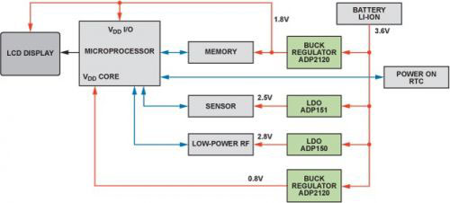 智能手機(jī)、平板電腦、數(shù)碼相機(jī)、導(dǎo)航系統(tǒng)、醫(yī)療設(shè)備和其它低功耗便攜式設(shè)備常常包含多個(gè)采用不同半導(dǎo)體工藝制造的集成電路。這些設(shè)備通常需要多個(gè)獨(dú)立的電源電壓,各電源電壓一般不同于電池或外部 AC/DC電源提供的電壓。