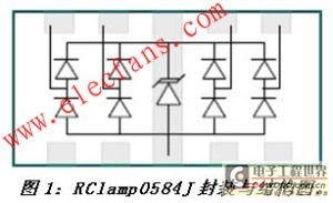 RClamp0584J是這種集成式TVS保護(hù)器件的一個(gè)最佳實(shí)例(圖1)。該器件是RailClamp系列高速接口保護(hù)產(chǎn)品的最新成員。這種四線、5V工作電壓保護(hù)器件的性能超出了IEC 6100-4-2 level 4對(duì)靜電瞬變的保護(hù)要求。圖1同時(shí)也明確顯示,這款器件采用了獨(dú)特的封裝設(shè)計(jì)。“穿通型(Flow through)”封裝一詞來自升特公司,這種封裝允許走線直接穿過保護(hù)器件,因此最大限度地減小了由于平衡差分線對(duì)的中斷或失配所導(dǎo)致的額外寄生電感與電容。