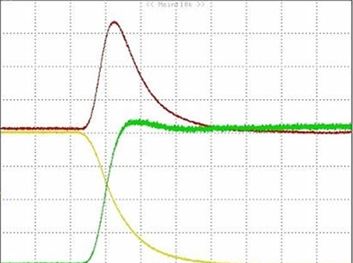 開關(guān)損耗其實也是一個很重要的指標(biāo)。從下圖可以看到,導(dǎo)通瞬間的電壓電流乘積相當(dāng)大。一定程度上決定了器件的開關(guān)性能。不過,如果系統(tǒng)對開關(guān)性能要求比較高,可以選擇柵極電荷QG比較小的功率MOSFET。