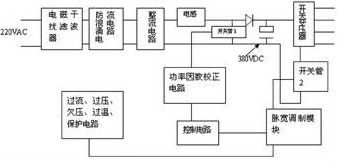 大多數(shù)升壓型功率因數(shù)校正電路在其濾波電容上的電壓值約為380V DC,其組成如下面框所示: