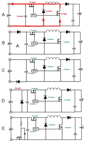 四開關(guān)非反相降壓-升壓有兩種操作模式,即降壓模式和降壓-升壓模式。在降壓模式下,轉(zhuǎn)換器產(chǎn)生輸入電壓脈沖,它經(jīng)過LC濾波來(lái)產(chǎn)生一個(gè)較低的直流輸出電壓。輸出電壓可以通過修改相對(duì)于開關(guān)周期或開關(guān)頻率的導(dǎo)通時(shí)間來(lái)改變。