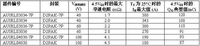全新溝道 HEXFET 功率 MOSFET 系列采用多款表面貼裝器件 (SMD) 封裝,電壓范圍從 40V 至 200V。標準和邏輯電平柵級驅動 MOSFET 都為 IR 車用塑料封裝 MOSFET 產(chǎn)品系列設定了導通電阻性能新標準?;鶞蕦娮柙?40V 下最大為 1.25 毫歐,60V 下最大為2.1 毫歐,75V 下為 2.6 毫歐,100V 下為 4.0 毫歐。在 D2Pak-7P 封裝中許多器件的最大額定電流達 240A。