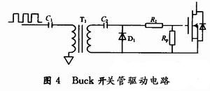 為了減小DB的反向恢復(fù)電流,進(jìn)一步減少存儲(chǔ)進(jìn)驅(qū)動(dòng)電源的電荷量,本文中的DB采用快速恢復(fù)二極管。Buck電路開(kāi)關(guān)管的驅(qū)動(dòng)電路,如圖4所示。