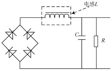 即功率因數(shù)校正( Pow er Factor Correct ion, PFC)是指有效功率與總耗電量( 視在功率) 之間的關(guān)系, 也就是有效功率除以總耗電量( 視在功率) 的比值。無(wú)源PFC 是指不使用晶體管等一些有源器件組成的校正電路, 一般情況下由二極管、電阻、電容和電感等無(wú)源器材組成。本文的PFC 主要是在整流橋堆和濾波電容之間加1 個(gè)電感, 具體原理如圖3 所示, 利用電感上的電流不能突變的特性來(lái)平滑電容充電強(qiáng)脈沖的波動(dòng), 改善電路中電流的畸變,并且利用電感上的電壓超前于電流這一特性來(lái)補(bǔ)償濾波電容電流超前電壓的特性, 使功率因數(shù)和電磁干擾都得以改善。