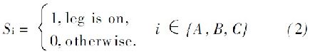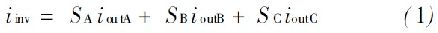 式中, SA , S B 和SC 是交換功能的交換機頂端的三個逆變器的開關(guān), 如下: