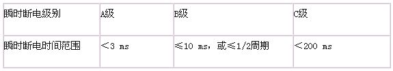 工業(yè)現(xiàn)場的供電品質(zhì)很差,常常不能達到國家對電網(wǎng)波動等級中規(guī)定的最低標準C級。表1列出了國家標準對電網(wǎng)波動等級的規(guī)定。當供電電壓超過C 級規(guī)定時,通常稱為過壓或者欠壓。而失壓又稱瞬時斷電。產(chǎn)生瞬時斷電,最常見的原因是用電設備突然短路而它的保險絲還沒有熔斷的瞬間。另外開關或刀閘觸點接觸不良或顫抖等也會產(chǎn)生瞬間斷電。瞬間斷電所允許時間國內(nèi)尚無標準,表2列出了日本《工業(yè)用計算機環(huán)境標準》中規(guī)定的瞬間斷電級別。