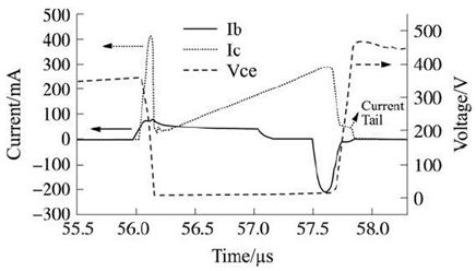 在開關(guān)晶體管關(guān)斷時(shí), 集電極電流不能馬上降為0, 而集電極電壓已經(jīng)從Vcesat開始上升, 在開關(guān)晶體管上產(chǎn)生電壓電流交替現(xiàn)象, 從而產(chǎn)生關(guān)斷損耗。
