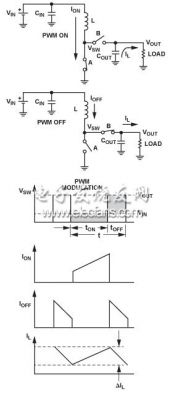 注意,開關(guān)調(diào)節(jié)器既可以連續(xù)工作,也可以斷續(xù)工作以連續(xù)導(dǎo)通模式 (CCM), 工作時,電感電流不會降至0;以斷續(xù)導(dǎo)通模式 (DCM),工作時,電感電流可以降至0. 電流紋波,在圖2中顯示為ΔIL 使用公式ΔIL = (VIN × tON)/L.計算。平均電感電流流入負(fù)載,而紋波電流流入輸出電容。