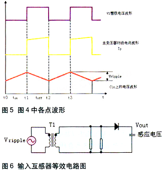 因此可以把輸入電容上的紋波電壓等效為T1初級(jí)的交流信號(hào)源,如圖6所示。