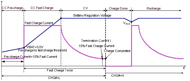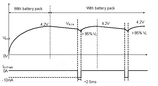 然而,當電池故障時,電池可能無法儲存電能,電壓抑不會升高,所充入的能量轉變成熱,除了依靠過溫度保護機制之外,IC內部亦具有超時計時器,無論此時電池電壓狀態(tài)如何,只要超過設定充電時間后,隨即關閉充電器,以達到多重保護使用者之功能。
