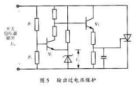 輸出過電壓保護在開關穩(wěn)壓電源中是至關重要的。特別對輸出為5V的開關穩(wěn)壓器來說,它的負載是大量的高集成度的邏輯器件。如果在工作時,開關穩(wěn)壓器的開關三極管突然損壞,輸出電位就可能立即升高到輸入未穩(wěn)壓直流電源的電壓值,瞬時造成很大的損失。常用的方法是晶閘管短路保護。最簡單的過電壓保護電路如圖4所示。當輸出電壓過高時,穩(wěn)壓管被擊穿,觸發(fā)晶閘管導通,把輸出端短路,造成過電流,通過保險絲或電路保護器將輸入切斷,保護了負載。這種電路的響應時間相當于晶閘管的開通時間,約為5~10μs。它的缺點是動作電壓是固定的,溫度系數(shù)大,動作點不穩(wěn)定。另外,穩(wěn)壓管存在著參數(shù)的離散性,型號相同但過電壓起動值卻各不相同,給調試帶來了困難。圖5是改進后的電路。其中R1、R2是取樣電路,Vz是基準電壓。