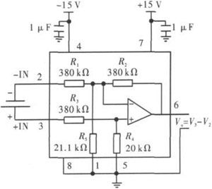 圖2 INA117輸出電壓是兩輸入電壓之差的接法