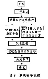 計算機通過串行口向發(fā)動機ECU發(fā)送數(shù)據(jù),采集到ECU噴油和點火輸出信號,通過串行口將這些數(shù)據(jù)傳給計算機。計算機接收數(shù)據(jù)并繪制圖形。