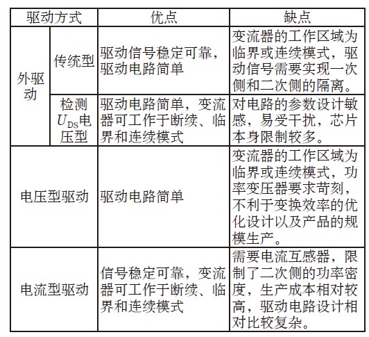 表1 不同的同步整流管驅(qū)動方案比較