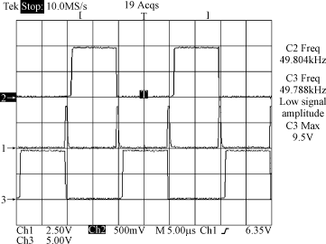 從圖6中可以看出,采用SG3525來實現(xiàn)PWM Buck三電平變換器的控制是可行的。