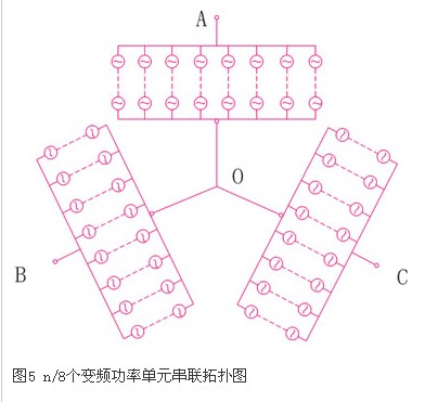 (2)同一個(gè)變流鏈中的各變頻功率單元輸出同相位、同頻率,而且電壓幅值相等;