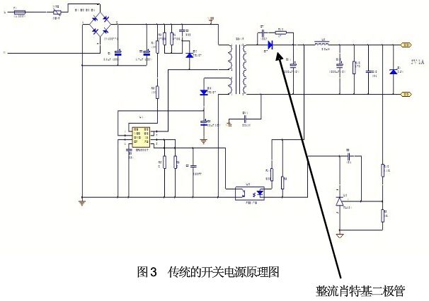 首先,從供電電源來看,如圖3是一個(gè)傳統(tǒng)的開關(guān)電源原理圖,如果要將5V降為4V,整流肖特基正向壓降所占輸出電壓比重必然增加,開關(guān)電源輸出電壓越低,因整流肖特基正向電壓比重越高(其比重X=V壓降/V輸出,輸出從5V降為4V,加入其壓降為0.5V,則其比重將從0.1上升為0.125,提高25%),電源輸出效率就越低,這對(duì)于LED屏幕整體節(jié)能效果并不明顯,所以采用這一電源設(shè)計(jì)原理顯然是是無法實(shí)現(xiàn)電源工作效率的提升。同時(shí),5V是標(biāo)稱值電壓,在市場運(yùn)用上已經(jīng)相當(dāng)成熟,啟用新的開關(guān)電源電源電壓,降低效率的同時(shí)只會(huì)增加成本,品質(zhì)也難保障,實(shí)現(xiàn)有困難。