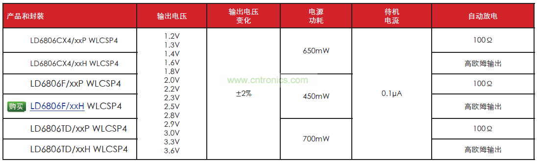 LDO 具有 2.3V 至 5.5V 的輸入電壓范圍,用戶可以訂購從 1.2V 至 3.6V 的 14種不同的輸出電壓。除了大范圍的配置和靈活的封裝選擇之外,LD6806 系列提供 LDO 調(diào)節(jié)器已形成的優(yōu)勢,其中包括低輸出噪音和高電源抑制比 (PSRR)。這些設(shè)備還受益于 10kV 的 HBM ESD 抗擾度、和高達(dá) 700mW 的功耗。