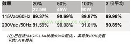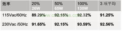 19V/90W輸出的適配器,這個(gè)適配器高16.5mm,長95mm,寬60mm,在這么一個(gè)薄小的設(shè)計(jì)卻能達(dá)到較好的效率,如表2所示。130W/19V一體機(jī)PC電源效率如表3所示。130W/19V一體機(jī)PC電源效率如表3所示。200W/19V 一體機(jī)PC電源效率如表4所示。