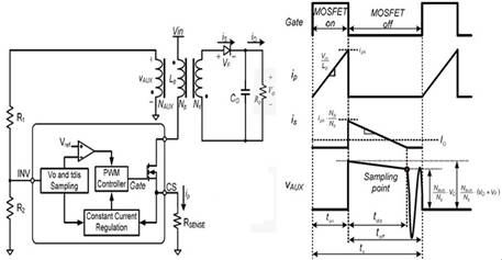 圖1原邊控制應(yīng)用框圖及主要節(jié)點波形圖。