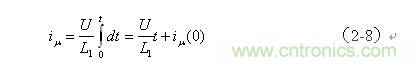 為流過變壓器初級線圈的勵(lì)磁電流,U為加到變壓器初級線圈兩端的電壓,L1為變壓器初級線圈的電感量,t為時(shí)間,