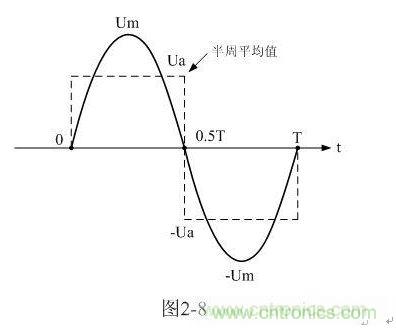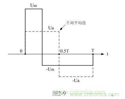 順便說明,這里的半周平均值,并不是一般意義上的正、負半周波形完全對稱交流電壓正半周、或負半周的平均值,這里的半周平均值是泛指整個周期中的正半波電壓或負半波電壓在半個周時間內(nèi)的平均值。如圖2-9所示。另外,(2-19)、(2-20)式中的半周平均值Ua和Ua-與第一章中(1-70)、(1-71)式定義的半波平均值Upa和Upa-也稍有一點差別,Ua和Ua-與Upa和Upa-的差別,主要是在分母上。