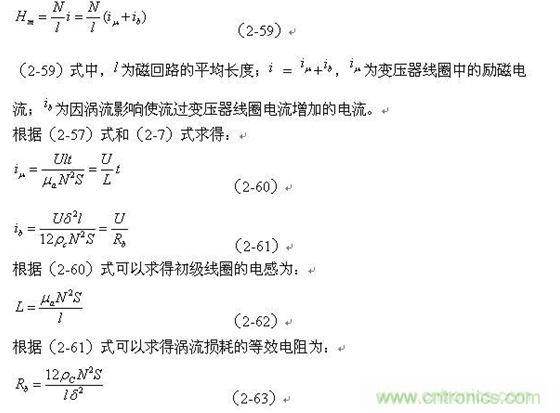 圖2-21-a就是根據(jù)(2-62)、(2-63)式畫出的開關(guān)變壓器受渦流影響時,輸入端磁化過程的等效電路圖。