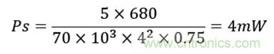 本次設(shè)計(jì)中,輸出功率為 5W,最大開(kāi)關(guān)頻率設(shè)計(jì)為 70KHz。所以,可以計(jì)算得,理論待機(jī)功耗為: