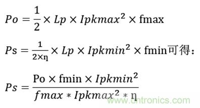 由上式可得,待機(jī)功耗的大小跟變壓器電感量大小,變換器具體的峰值電流無(wú)關(guān),只與設(shè)計(jì)的最高工作頻率與芯片最低工作頻率比以及最大設(shè)計(jì)峰值電流和最小峰值電流比有關(guān)。根據(jù)芯片規(guī)格書(shū)得: